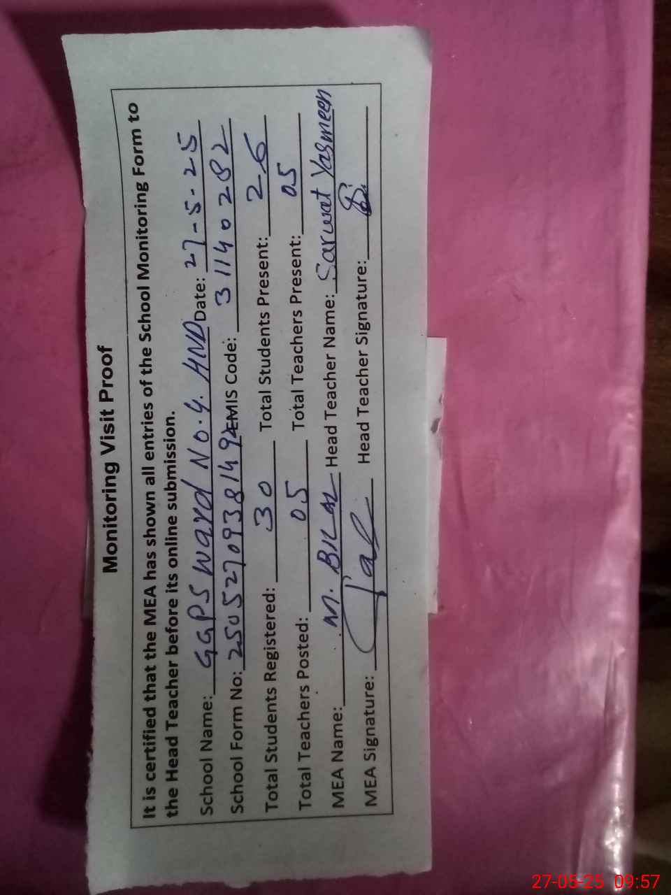 | EMIS Code: 31140282 | Name of School: GGPS WARD NO. 4 HAROON ABAD | |||