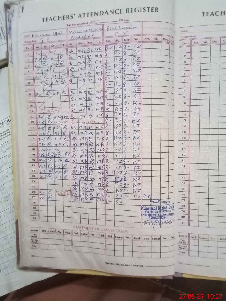 | Attendance Register | Head Teacher | MEA with School | Visit Proof |
