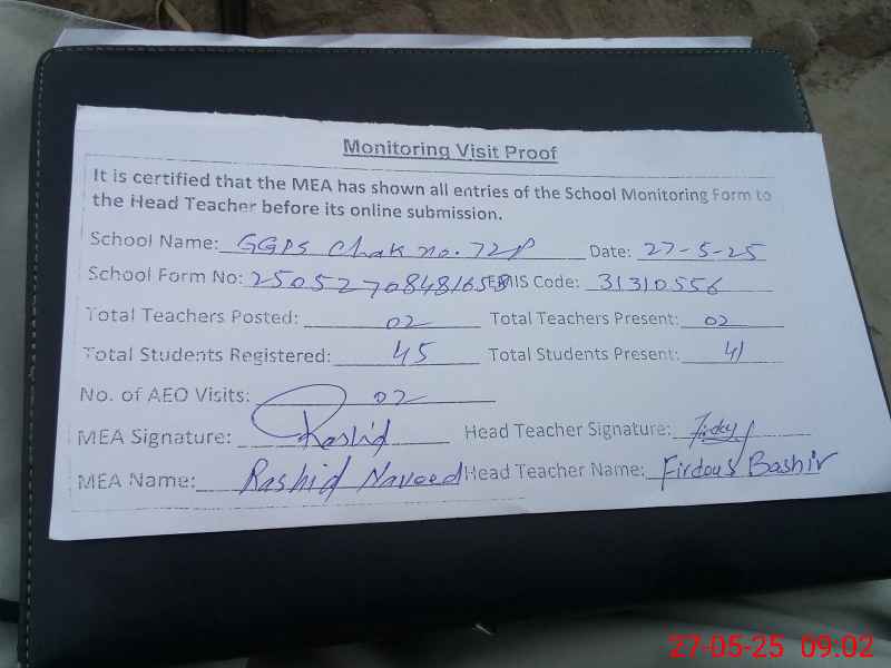 | EMIS Code: 31310556 | Name of School: GGPS CHAK NO 72/P | |||