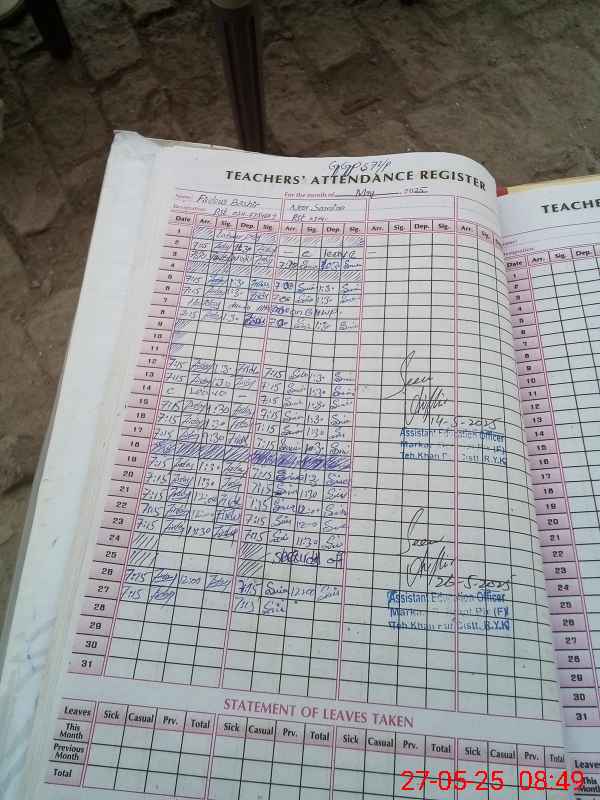 | Name: Fi**** Ba**** Designation: (School Headmaster's/Headmistress's) PST Phone/Cell Number: 03**** |