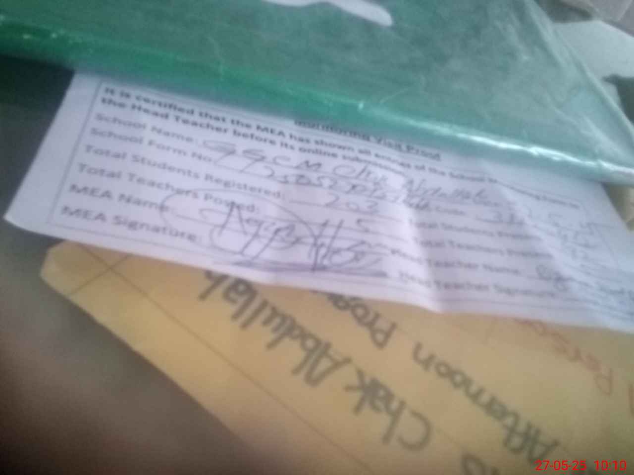 | Certified that this School was Inspected by the Undersigned MEA/DMO Today and the Information Stated Above is as Per Record. | |||||