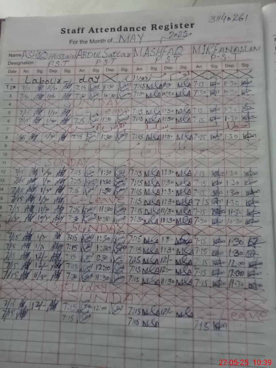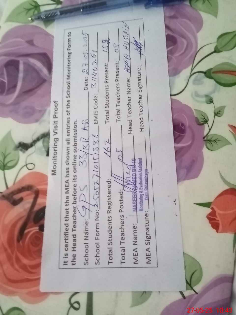 | Name: AS**** HU**** Designation: (School Headmaster's/Headmistress's) PST Phone/Cell Number: 03**** |