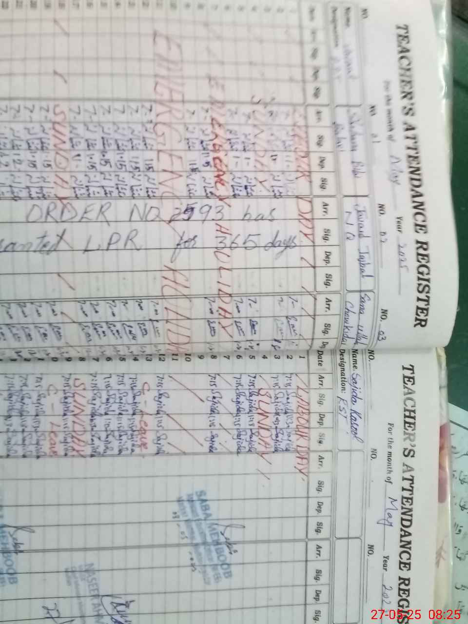 | CNIC | Full Name | Designation | R/C | Absence During Last Calender Month |