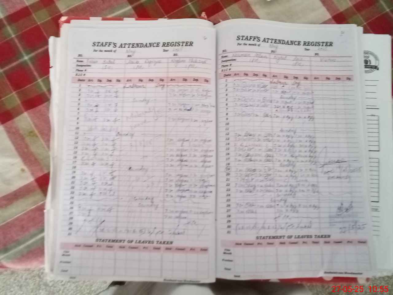 | 36**** | Ab**** Ra**** | PST | Regular | 0 | 0 | 0 | 0 | 0 | 0 | 0 | 0 | 0 | Maternity |