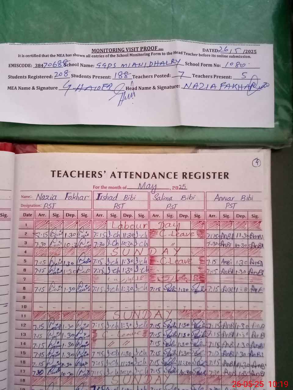 | Attendance Register | Head Teacher | MEA with School | Visit Proof |