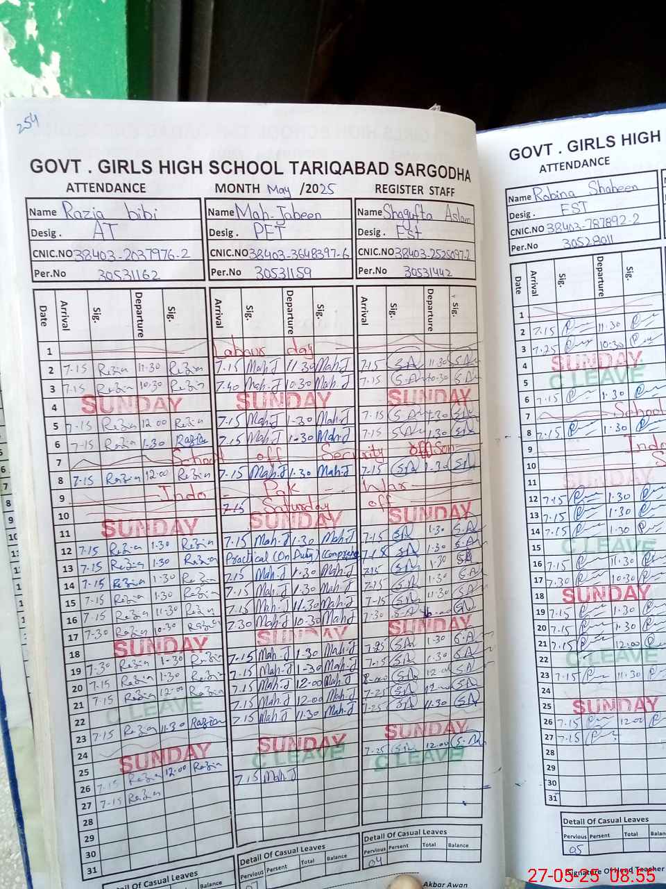| CNIC | Full Name | Designation | R/C | Absence During Last Calender Month |