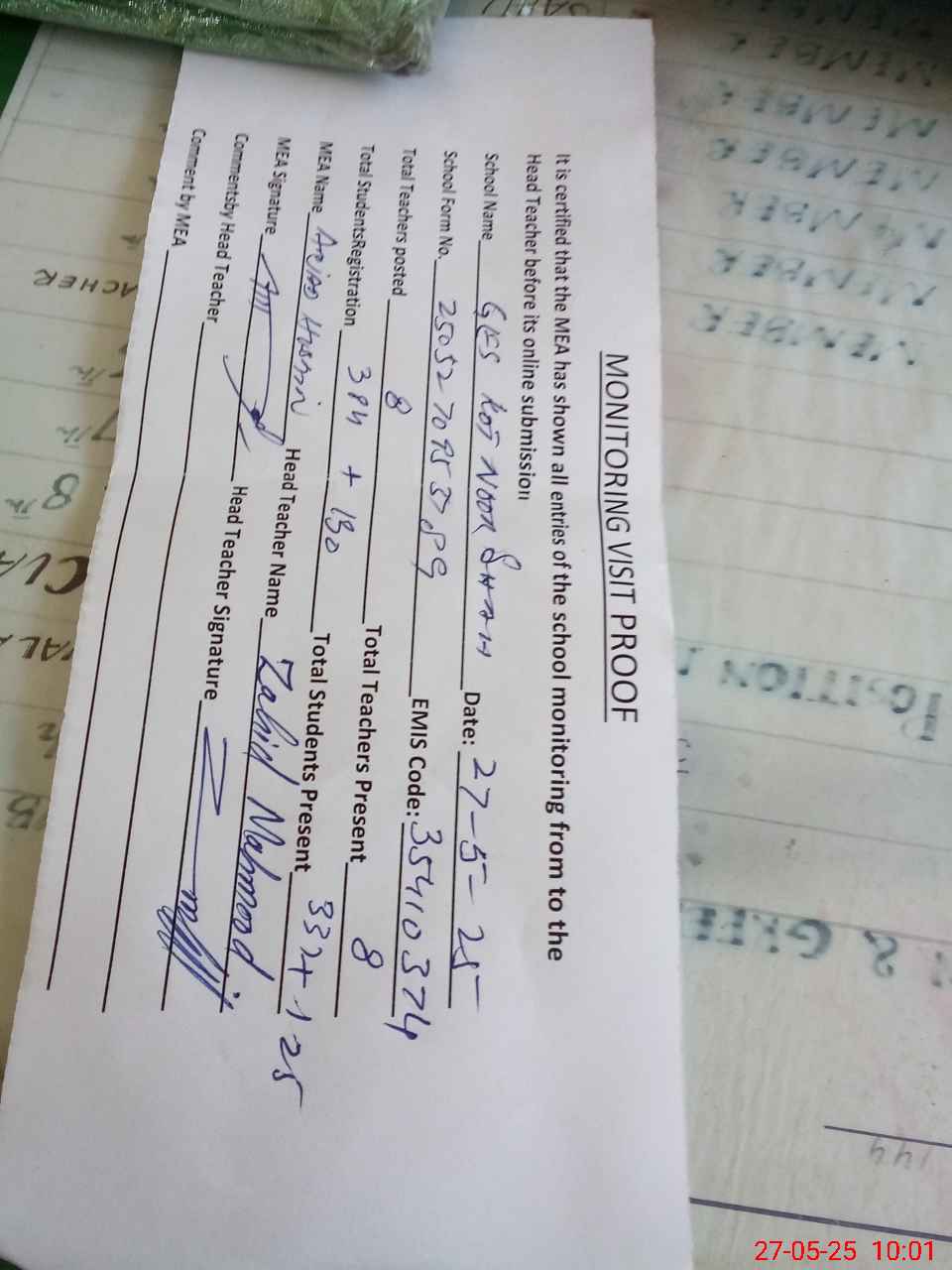| EMIS Code: 35410374 | Name of School: GES KOT NOOR SHAH | |||