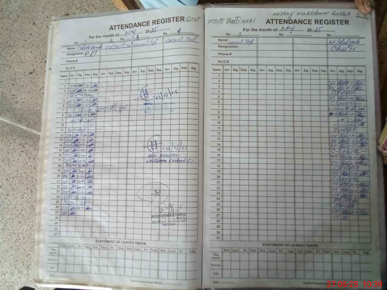 | Name: Za**** Ah**** Designation: (School Headmaster's/Headmistress's) PST Phone/Cell Number: 03**** |