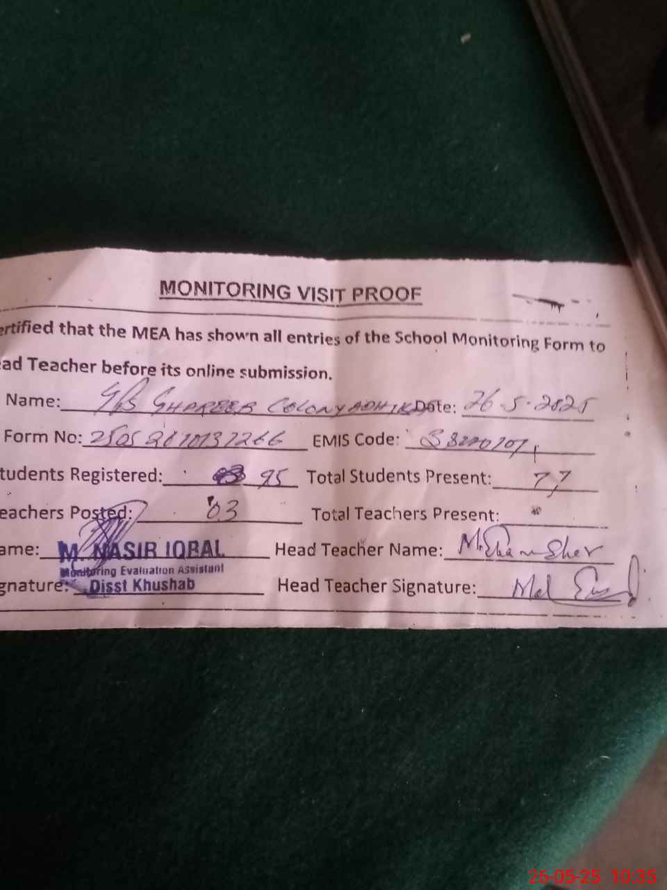 | EMIS Code: 38220101 | Name of School: GPS GHEREEB COLONY, ADHI KOT | |||