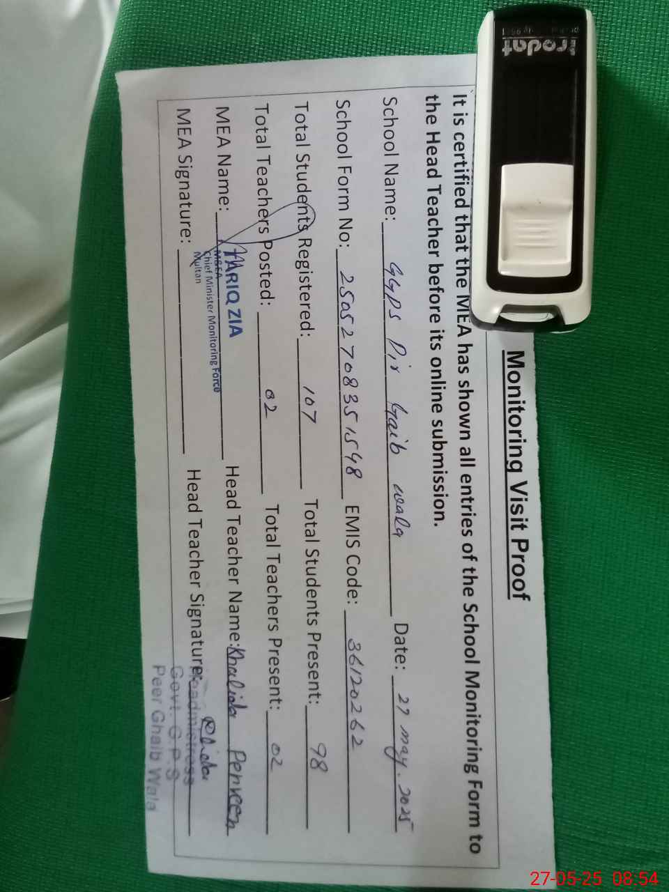 | EMIS Code: 36120262 | Name of School: GGPS PIR GAIB WALA SHUJABAD DISTT. MULTAN | |||