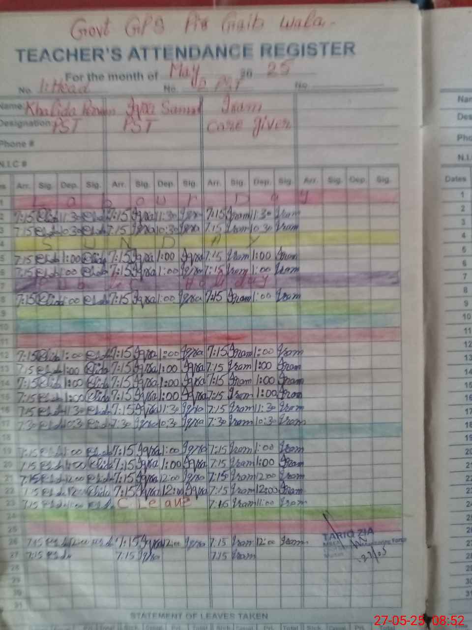 | Name: KH**** PE**** Designation: (School Headmaster's/Headmistress's) PST/PTC/JV Phone/Cell Number: 03**** |
