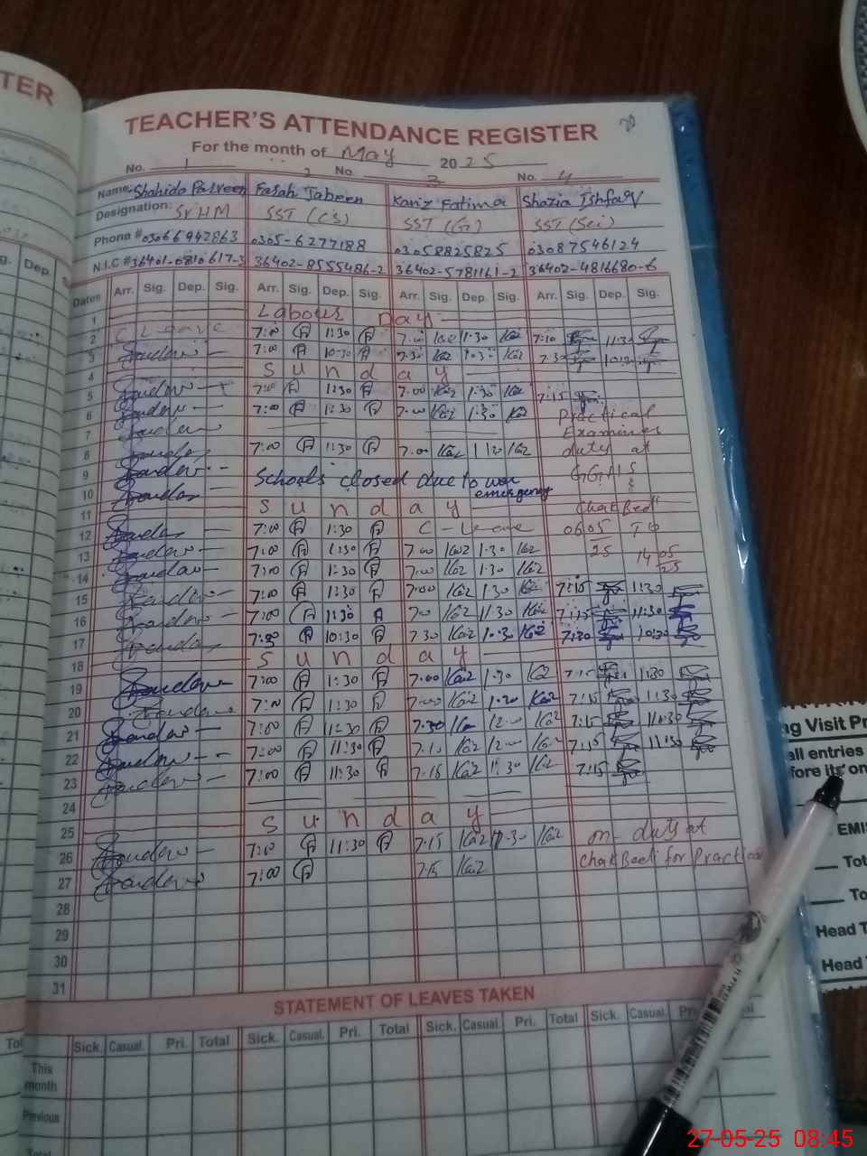 | 36**** | Sh**** As**** | Regular | 1 | 12 | 0 | 0 | 0 | 0 | 0 | 0 | 1 | Exam Duty | |