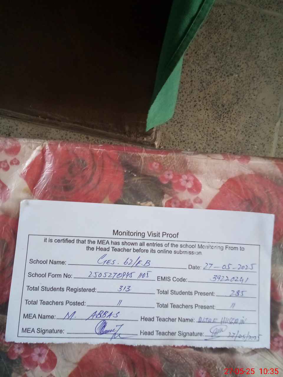 | EMIS Code: 39220241 | Name of School: GES 62 EB | |||