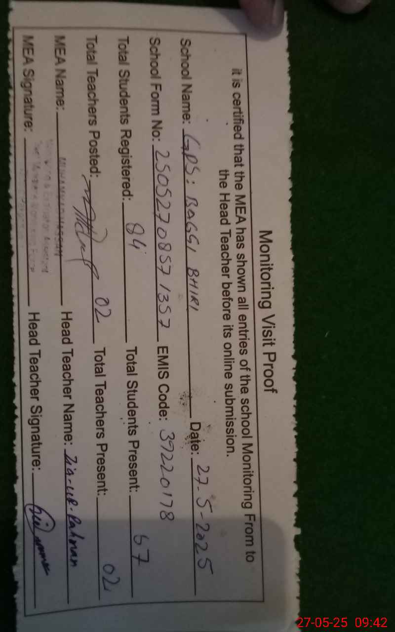 | EMIS Code: 39220178 | Name of School: GPS BAGGI BHIRRI P/O SHAFI ARIF WALA | |||