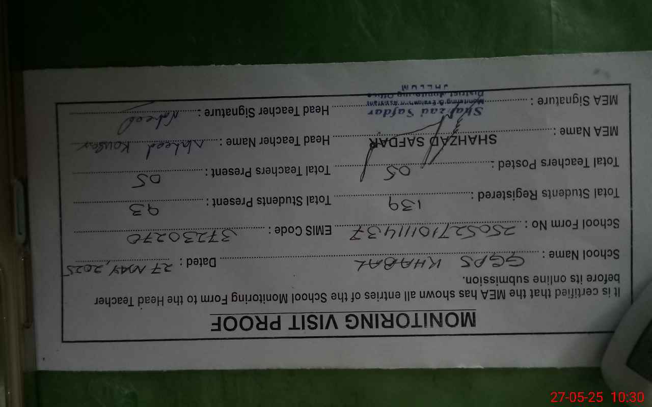 | EMIS Code: 37230270 | Name of School: GGPS KHABAL | |||