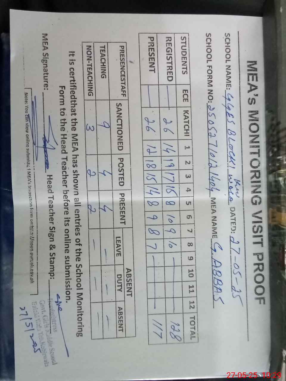 | EMIS Code: 36410511 | Name of School: GGES BLOCKI WALA, NAWAN SHEHR | |||