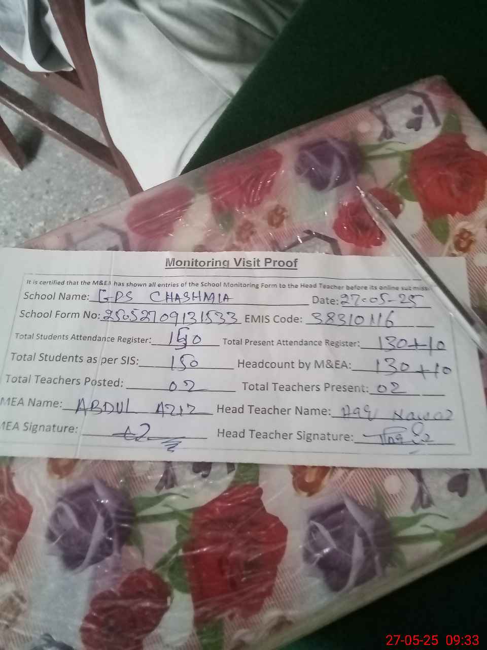 | EMIS Code: 38310116 | Name of School: GPS CHASHMAI | |||