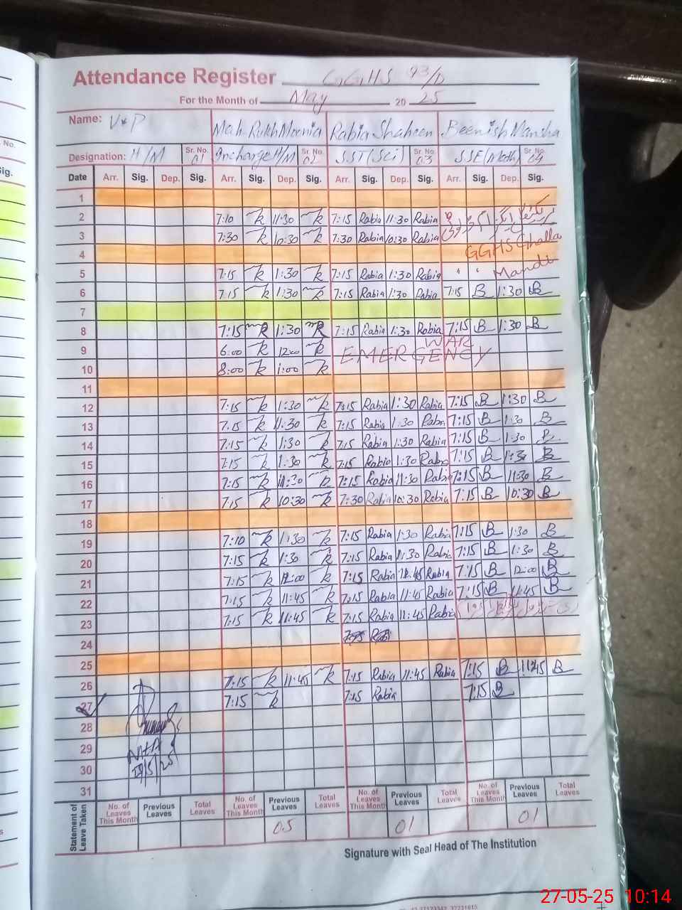 | 36**** | Ay**** Ma**** | Regular | 0 | 0 | 0 | 0 | 0 | 0 | 0 | 0 | 0 | Exam Duty | |
