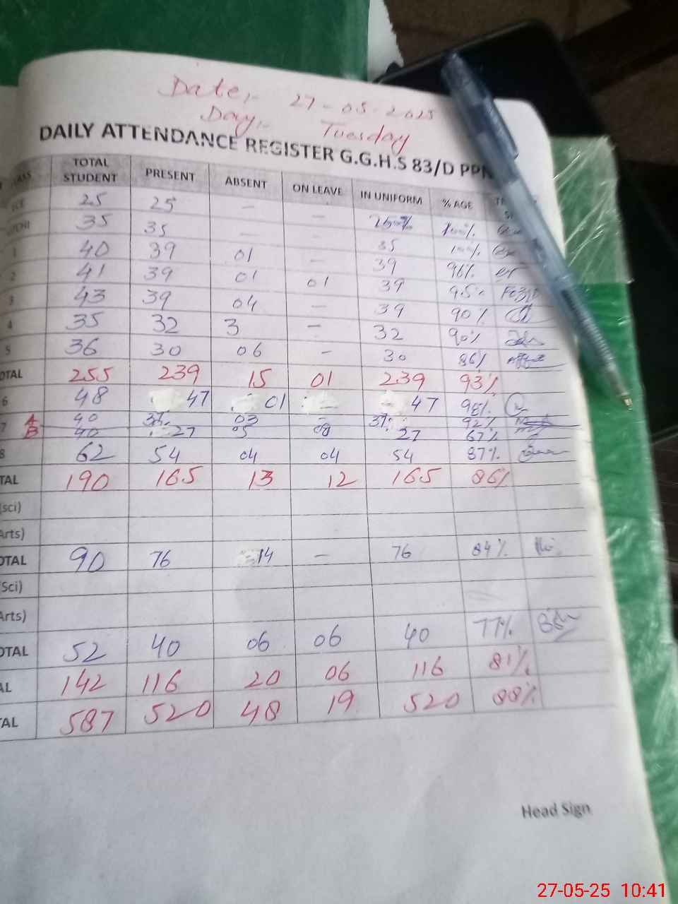 | 31**** | Re**** Be**** | Regular | 1 | 3 | 0 | 0 | 0 | 0 | 0 | 0 | 1 | Exam Duty | |
