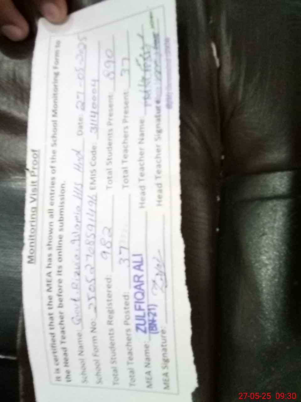 | Attendance Register | Head Teacher | MEA with School | Visit Proof |
