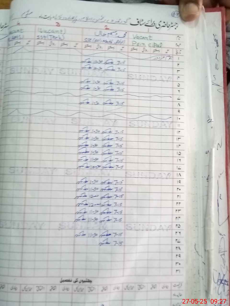 | CNIC | Full Name | Designation | R/C | Absence During Last Calender Month |