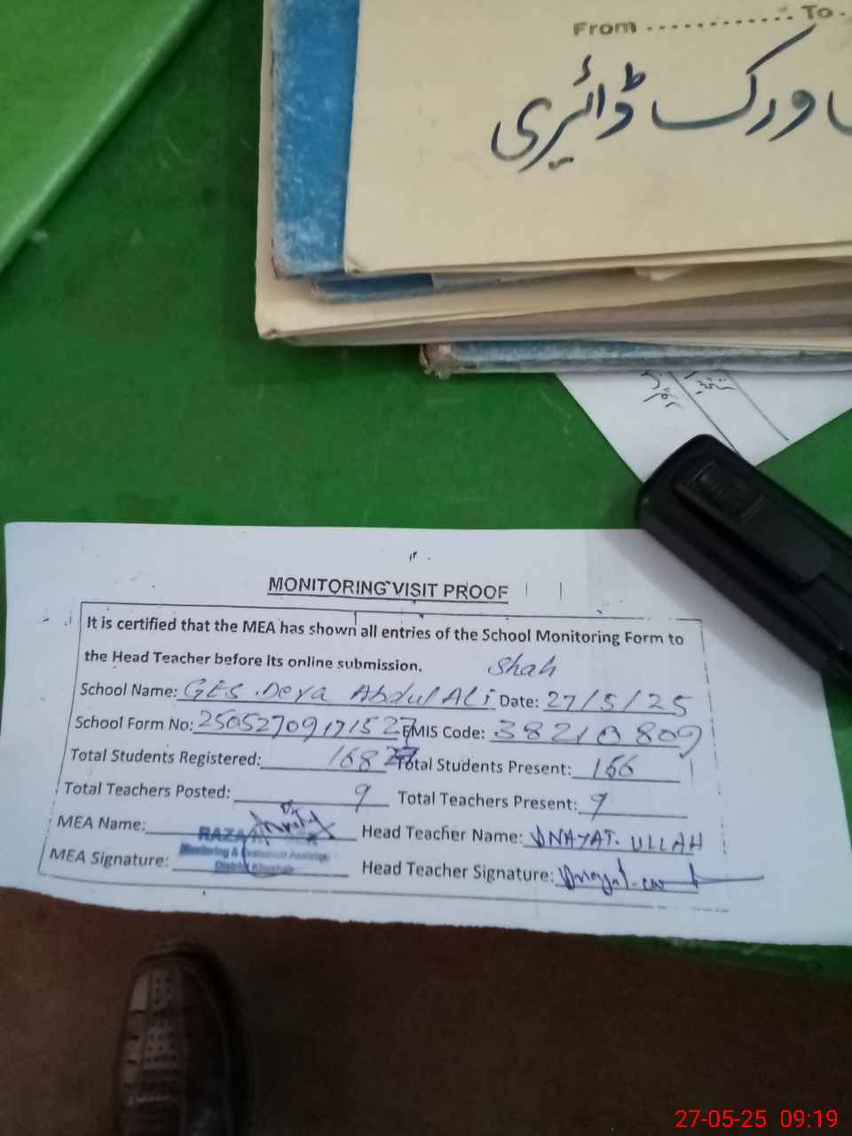 | Attendance Register | Head Teacher | MEA with School | Visit Proof |