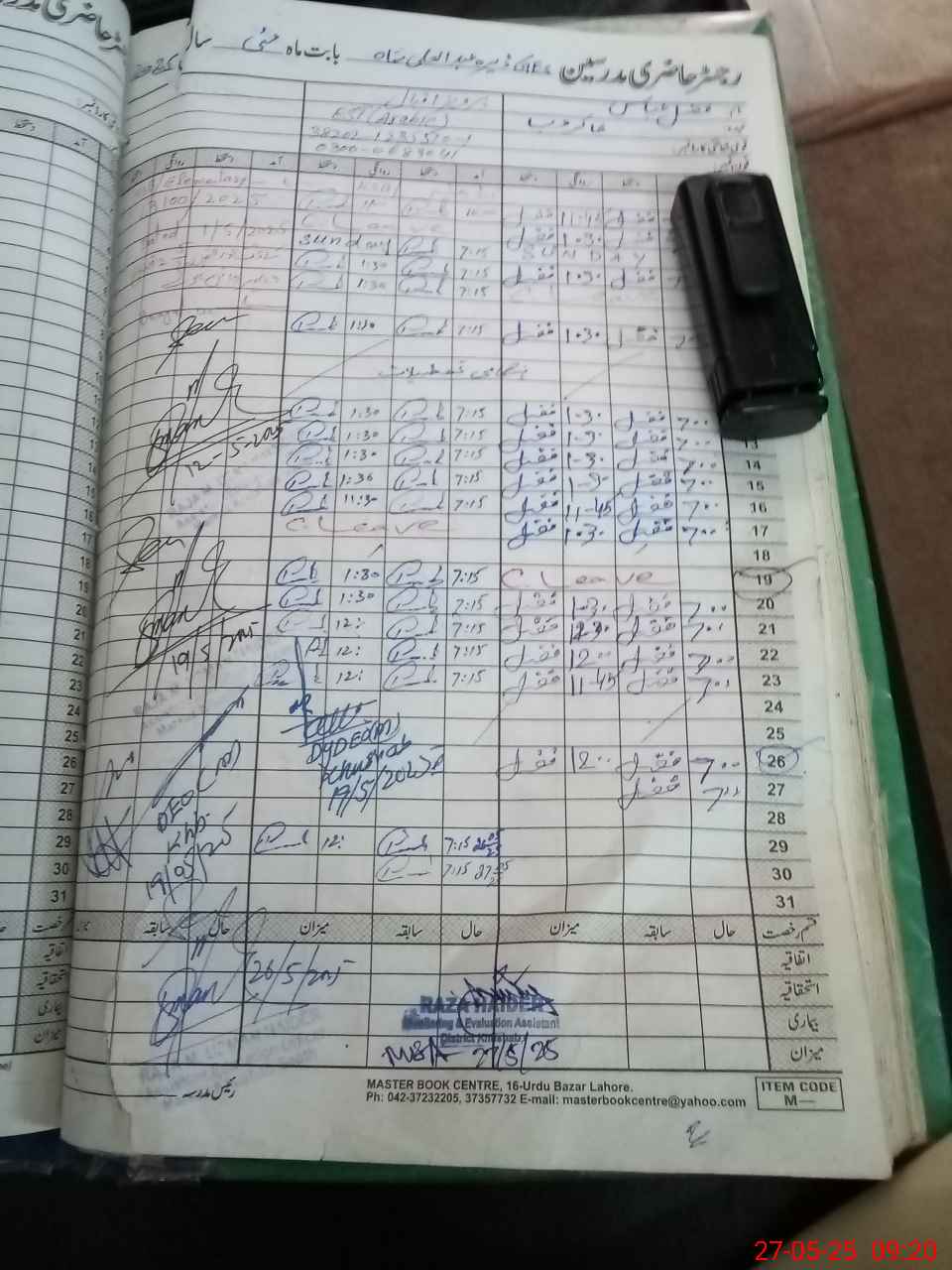 | CNIC | Full Name | Designation | R/C | Absence During Last Calender Month |