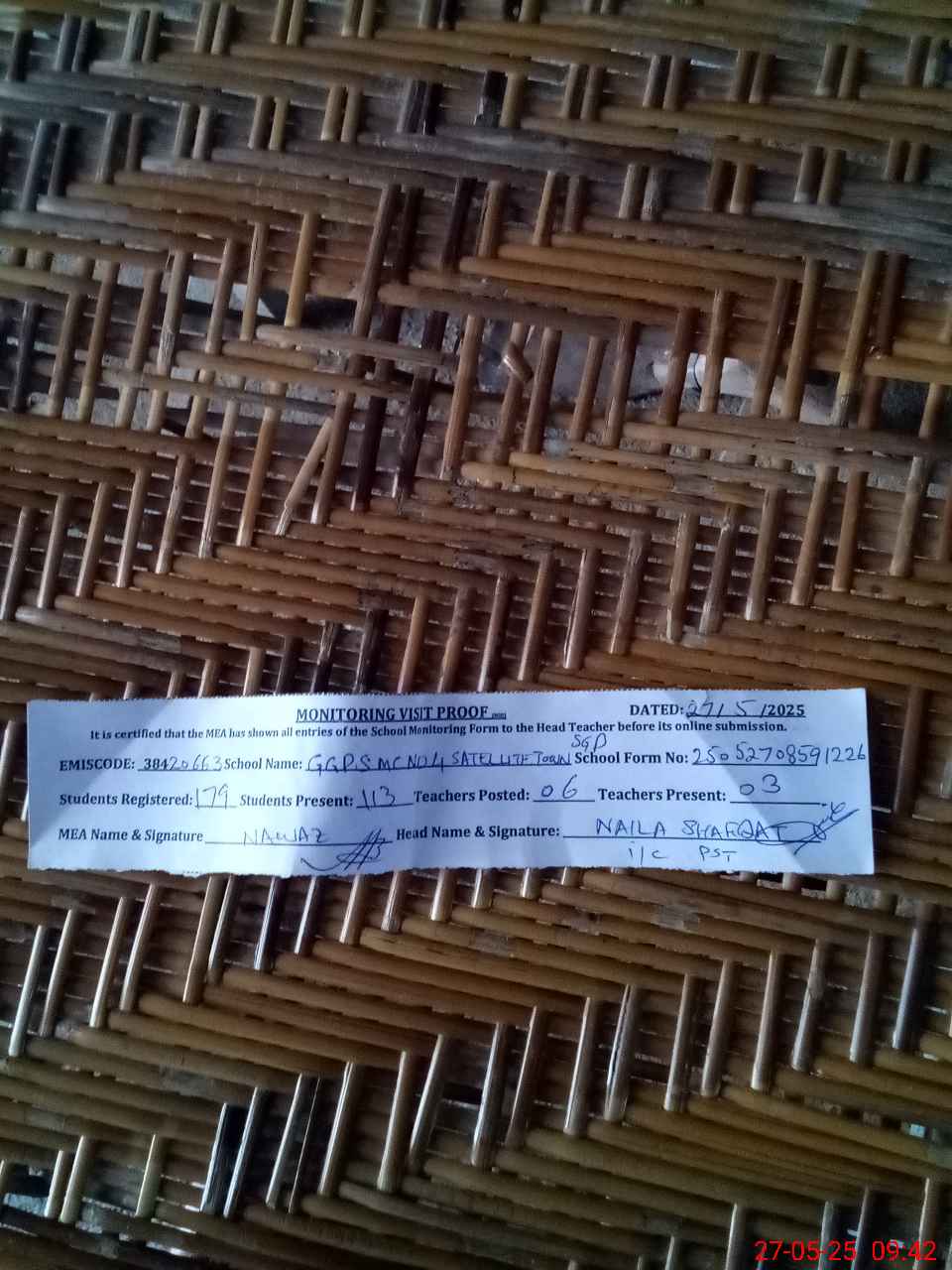 | Attendance Register | Head Teacher | MEA with School | Visit Proof |