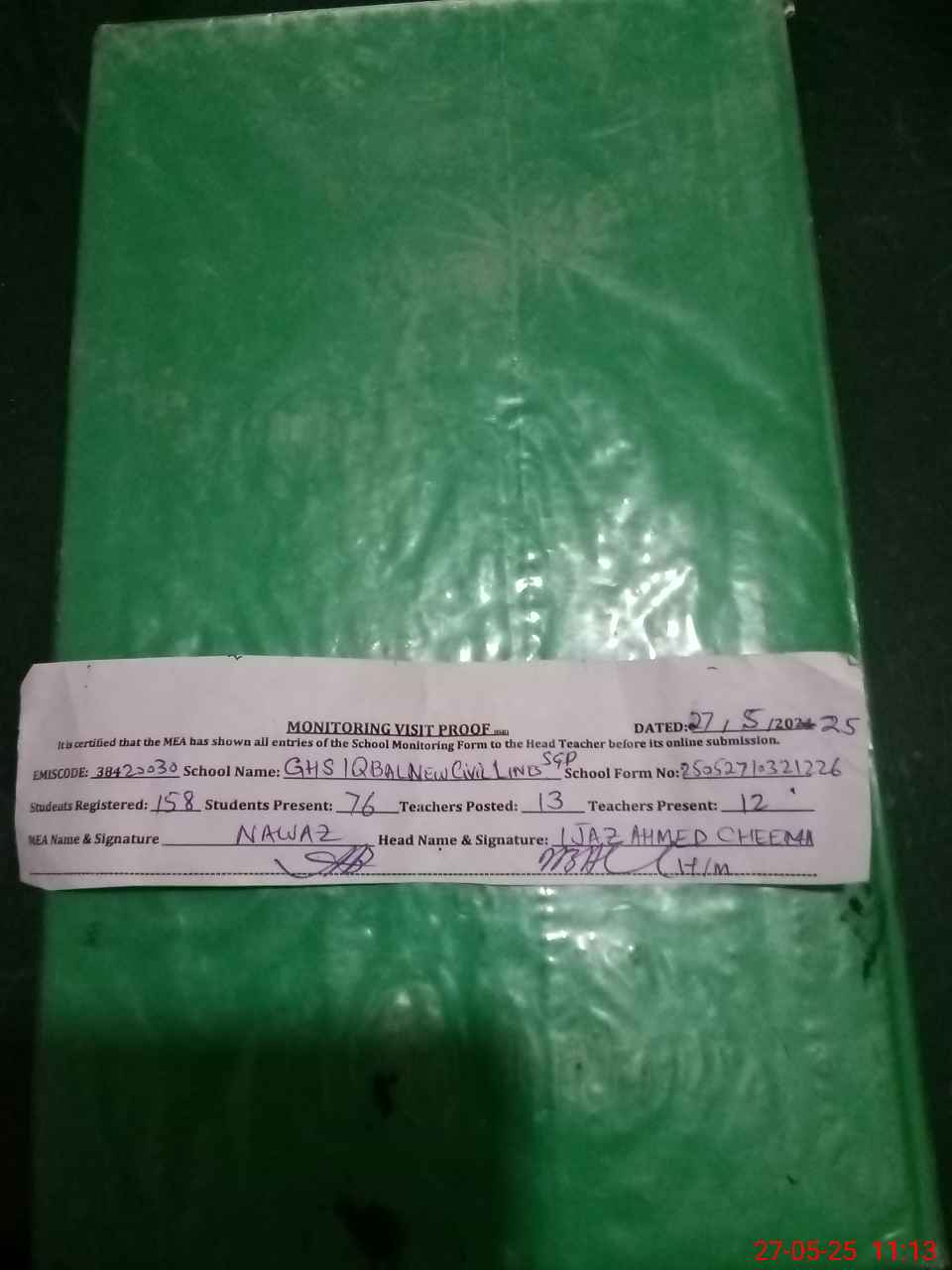 | Attendance Register | Head Teacher | MEA with School | Visit Proof |