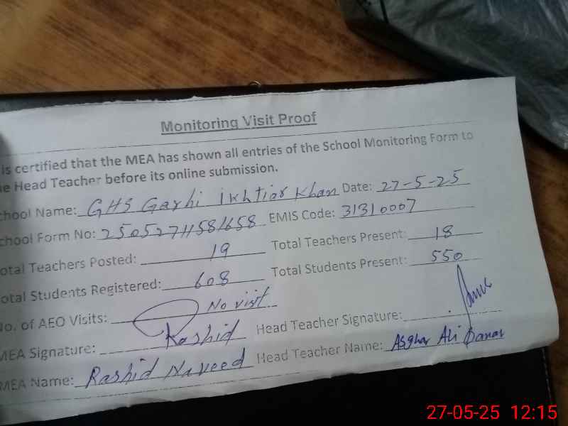 | EMIS Code: 31310007 | Name of School: GHS GARHI IKHTIAR KHAN | |||