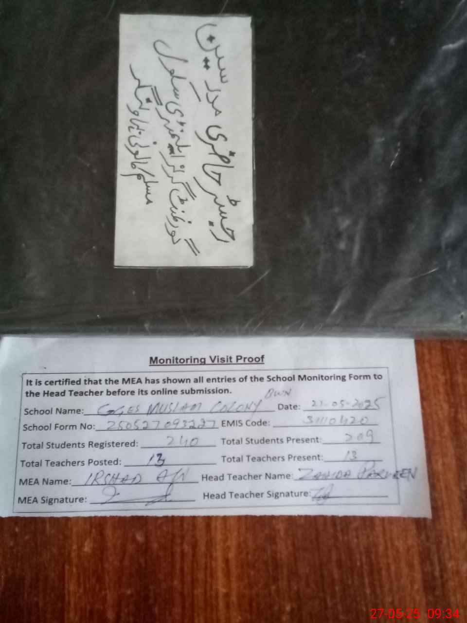 | EMIS Code: 31110420 | Name of School: GGES MUSLIM COLONY | |||