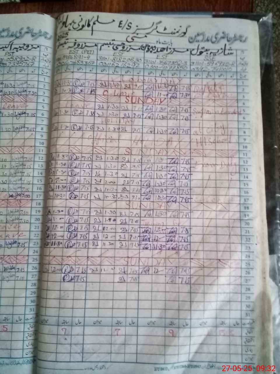 | 31**** | Sh**** Ba**** | 6 | 2 | 0 | 0 | 0 | 0 | 0 | 0 | 0 | 0 | 0 | Exam Duty |