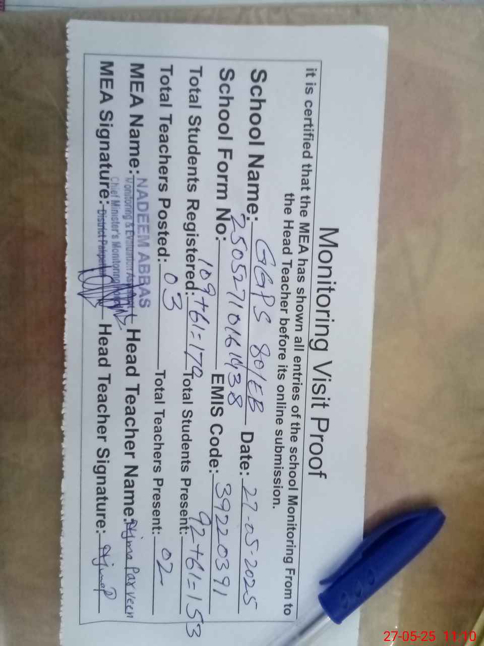 | EMIS Code: 39220391 | Name of School: GGPS 80 EB | |||