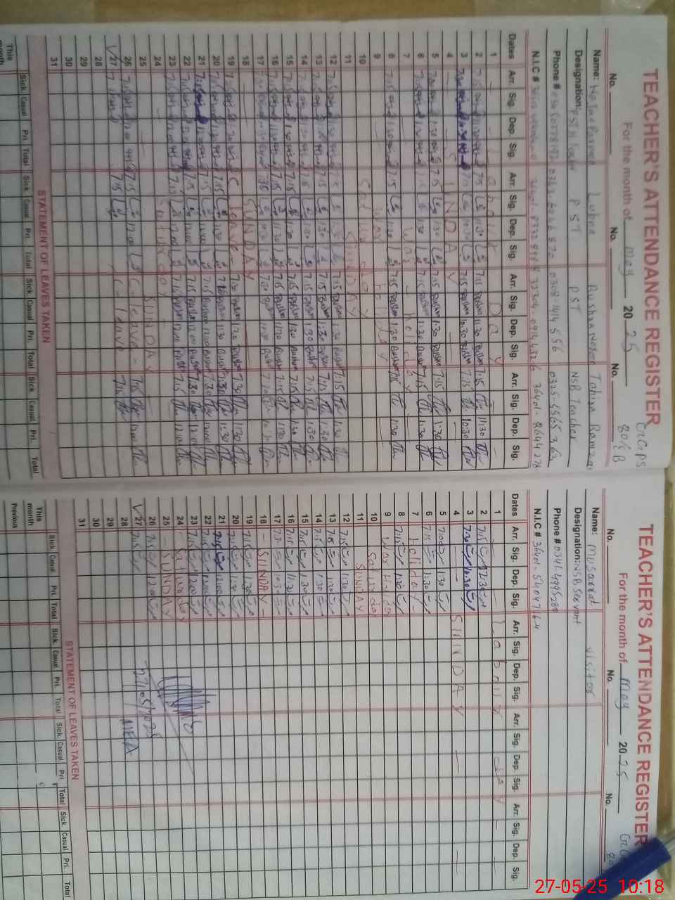 | Name: NA**** PE**** Designation: (School Headmaster's/Headmistress's) PST Phone/Cell Number: 03**** |