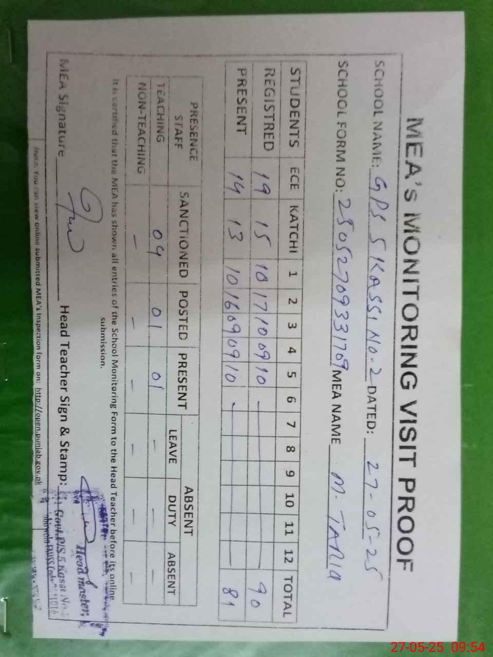 | EMIS Code: 36410167 | Name of School: GPS 5-KASSI NO.2 KABIRWALA | |||