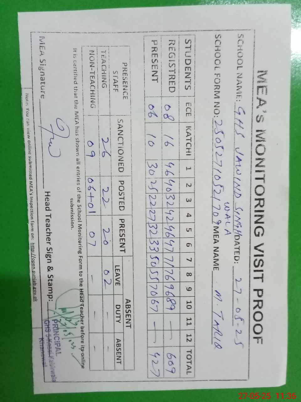 | EMIS Code: 36410013 | Name of School: GHS JAWIND SINGH WALA, KABIRWALA | |||