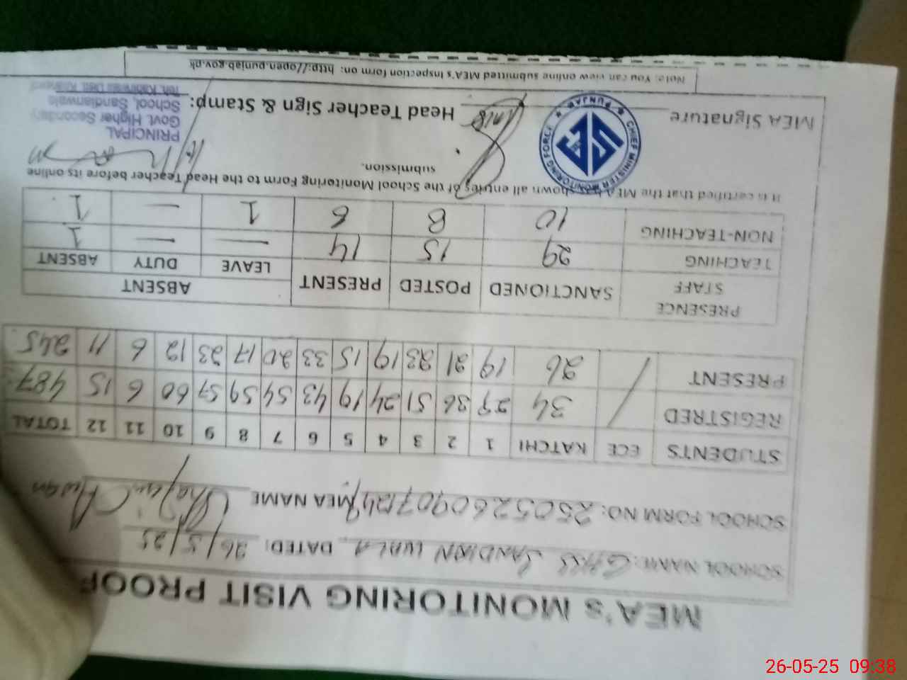 | EMIS Code: 36410015 | Name of School: GHSS SANDIAN WALA, KHANEWAL | |||