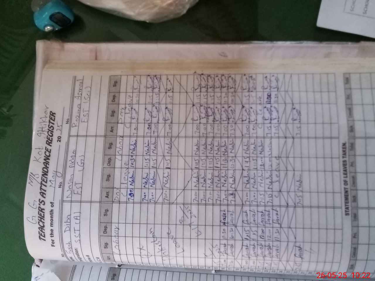 | Leave | Duty | Absent | Maternity | Medical | Ex- Pak |