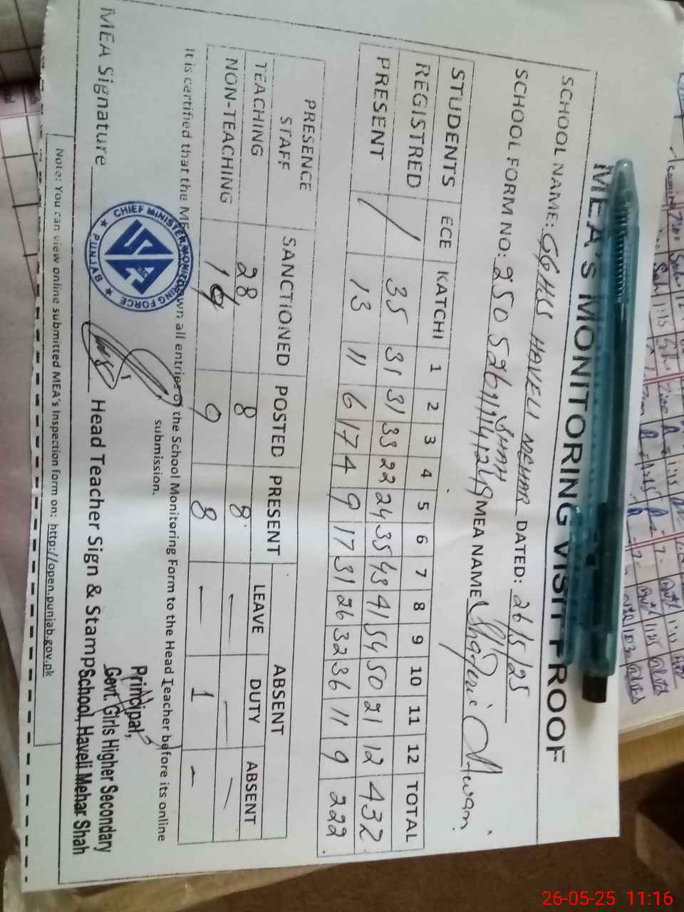 | EMIS Code: 36410003 | Name of School: GGHSS HAVELI MEHR SHAH, ABDUL HAKIM | |||