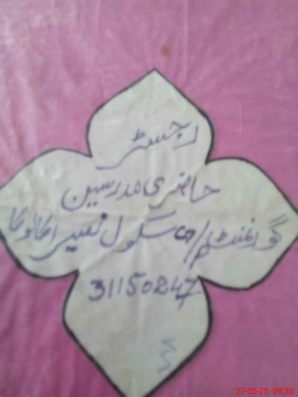 | Name: Om**** Yo**** Designation: (School Headmaster's/Headmistress's) PST Phone/Cell Number: 03**** |