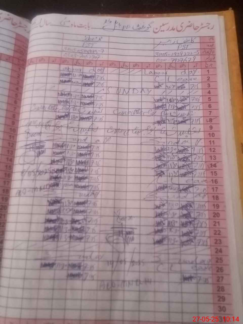 | Name: MMu**** Designation: (School Headmaster's/Headmistress's) PST Phone/Cell Number: 03**** |