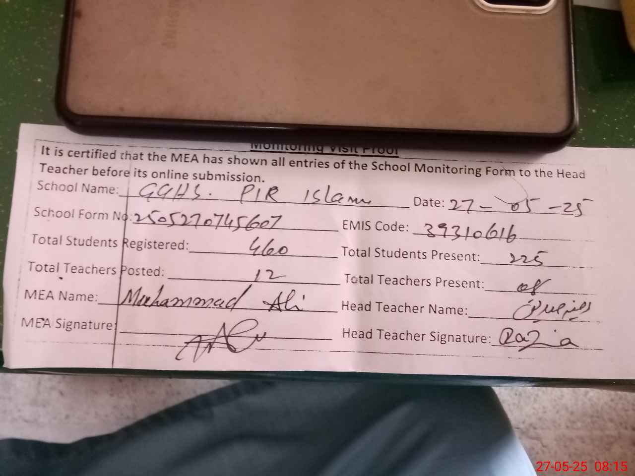 | EMIS Code: 39310616 | Name of School: GGHS PIR ISLAM | |||