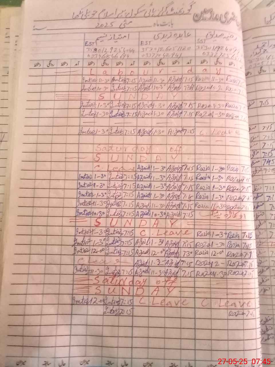 | 35**** | Is**** Sh**** | PST | Regular | 0 | 0 | 0 | 0 | 0 | 0 | 0 | 0 | 0 | Absent (Un-Authorized) |