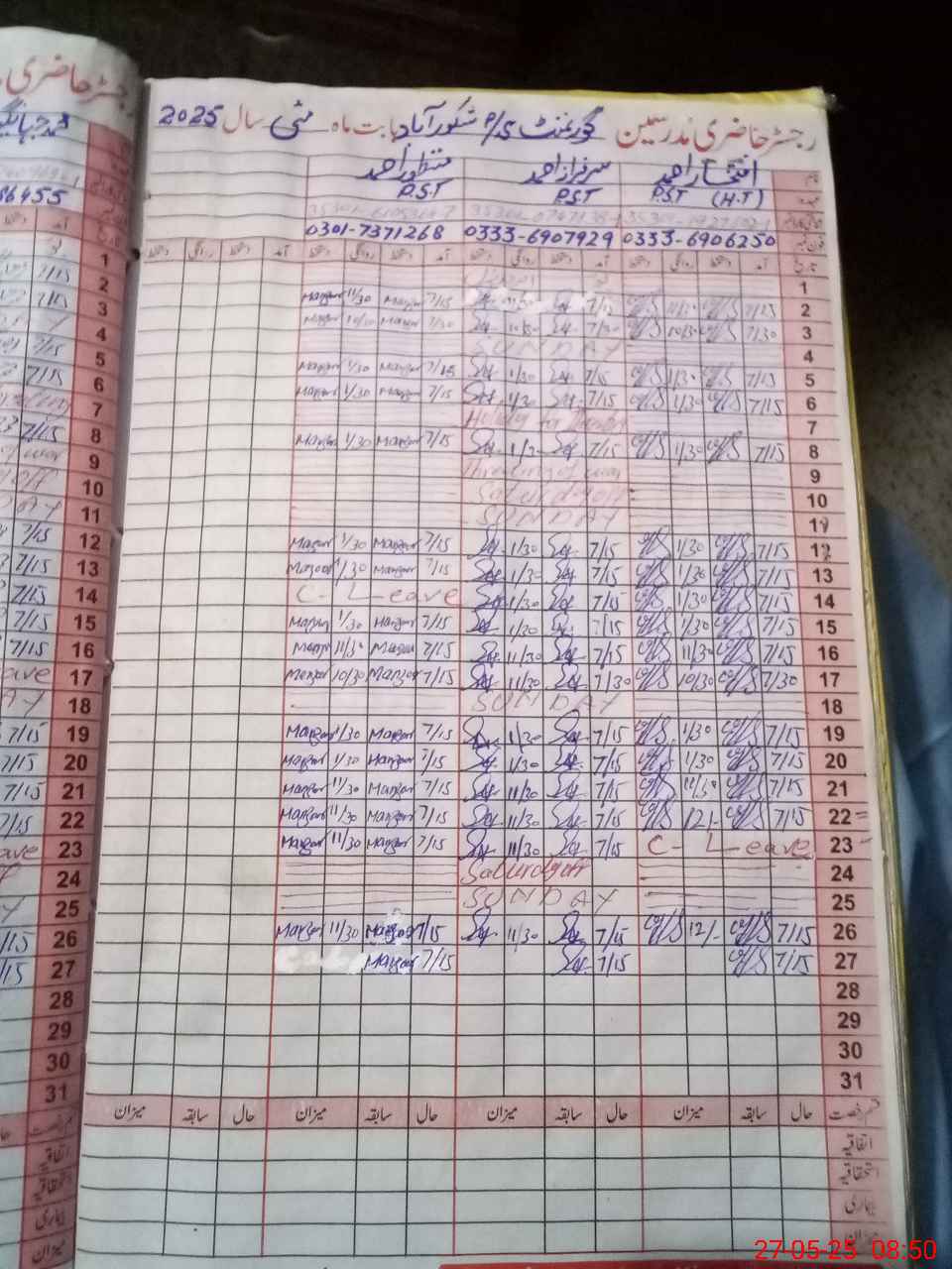 | Name: IF**** AH**** Designation: (School Headmaster's/Headmistress's) PST Phone/Cell Number: 03**** |