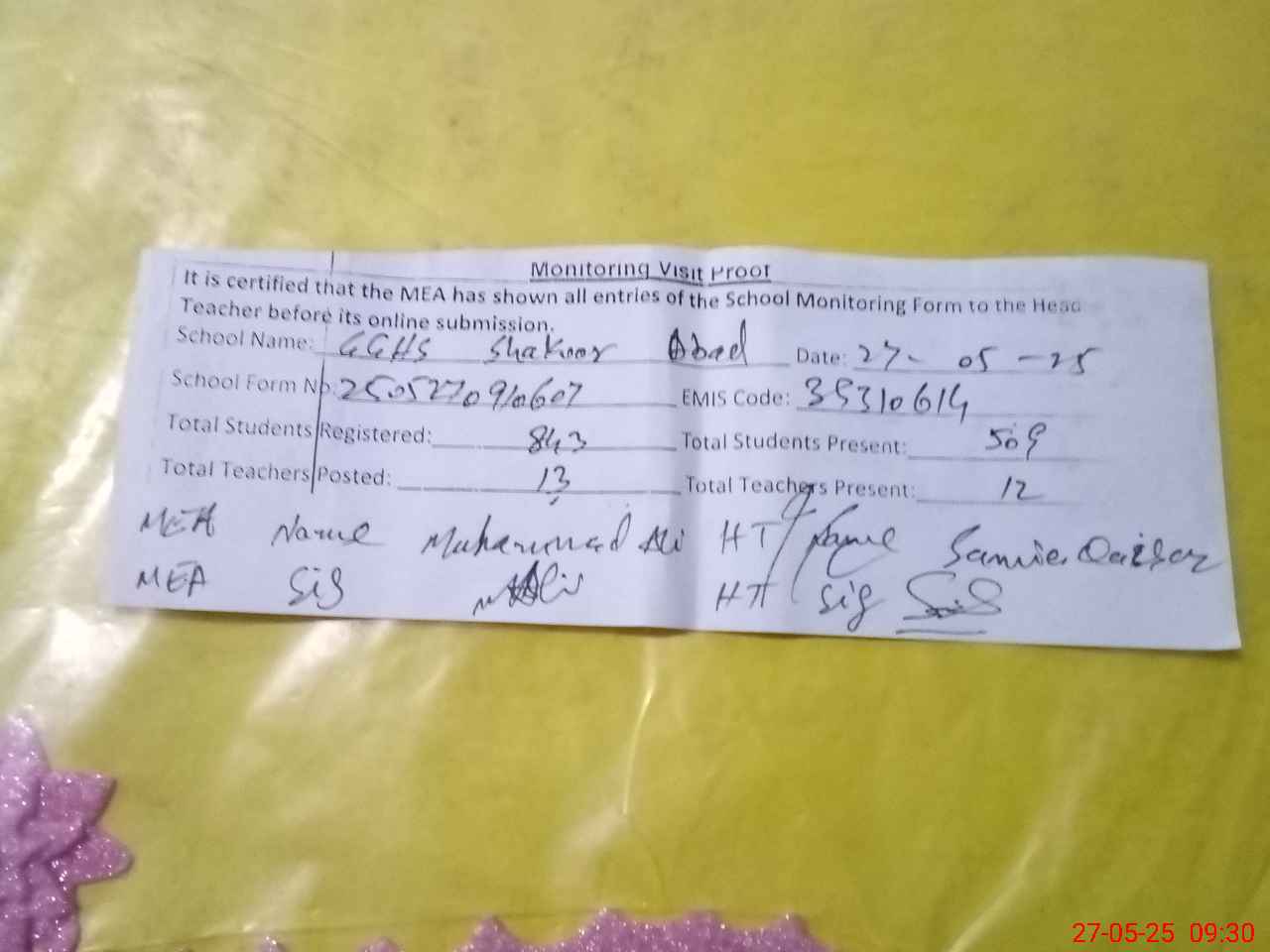 | EMIS Code: 39310614 | Name of School: GGHS SHAKOOR ABAD | |||