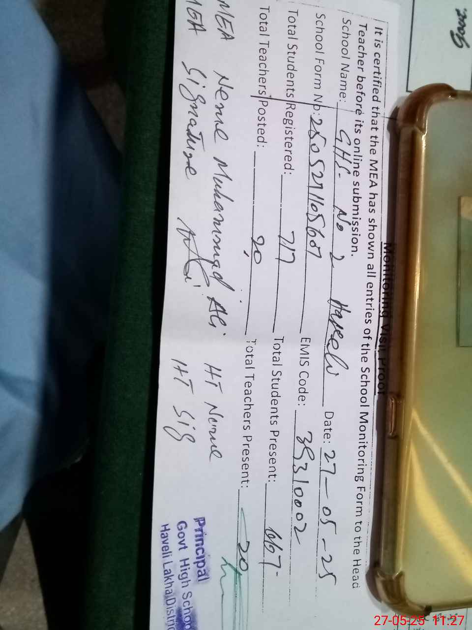 | EMIS Code: 39310002 | Name of School: GHS NO 2 HAVELI | |||