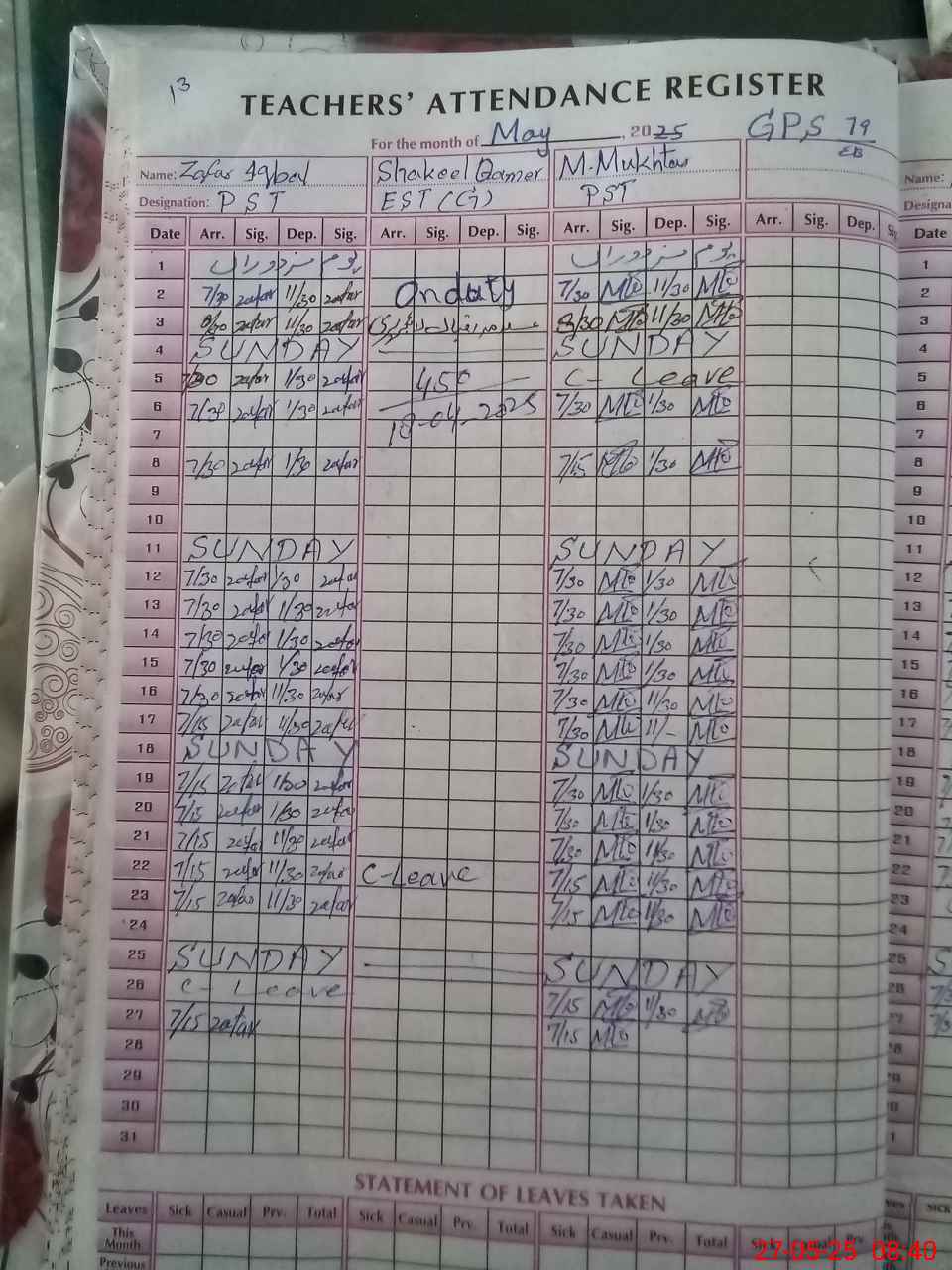 | Name: MU**** ZA**** IQ**** Designation: (School Headmaster's/Headmistress's) PST Phone/Cell Number: 03**** |