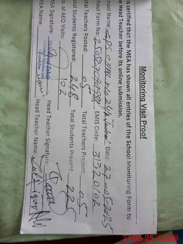 | Attendance Register | Head Teacher | MEA with School | Visit Proof |
