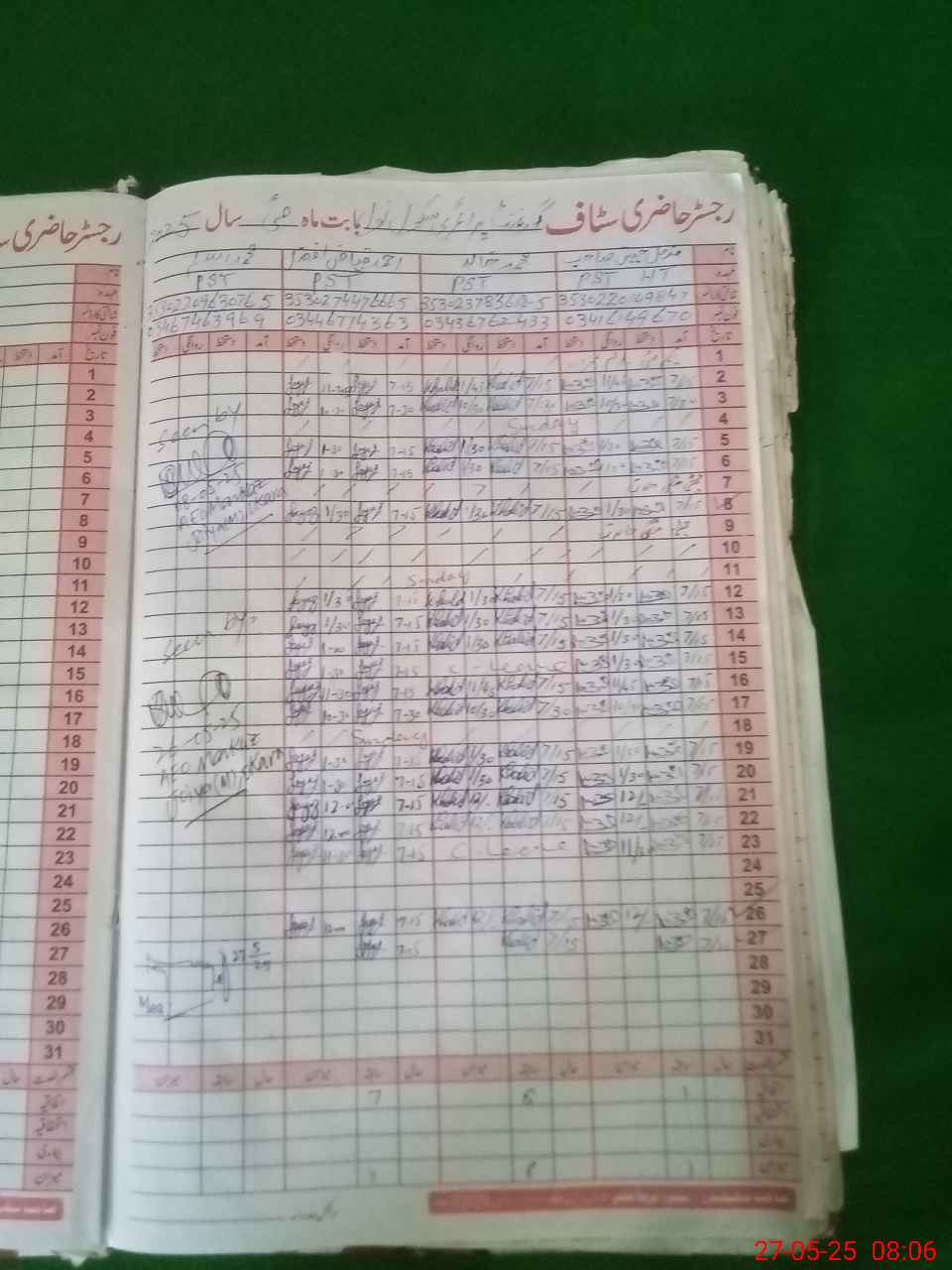 | CNIC | Full Name | Designation | R/C | Absence During Last Calender Month |