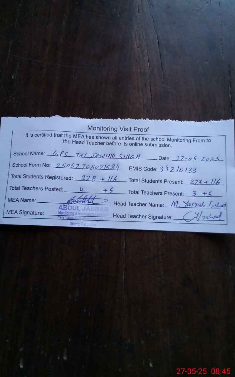 | EMIS Code: 39210133 | Name of School: GPS TAI JAWIND SINGH | |||